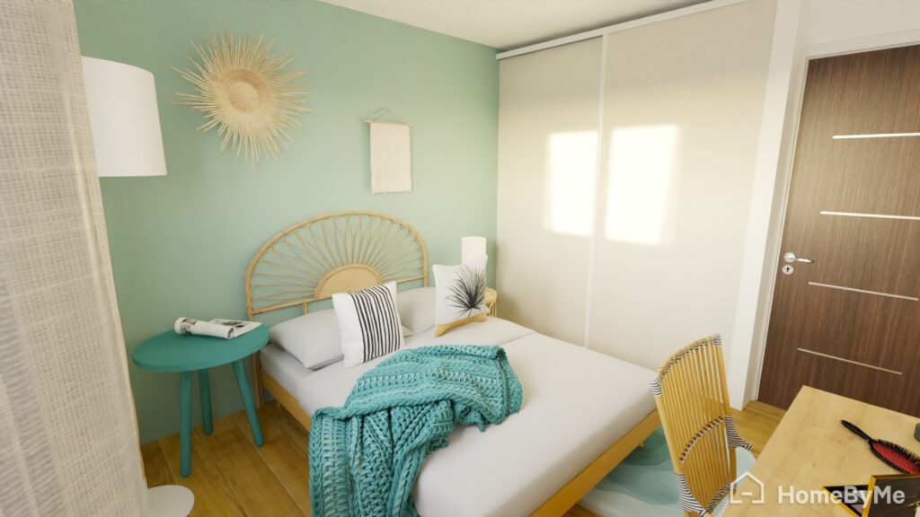 Après délibération, les filles ont choisi le vert sauge, c’est donc parti pour la shopping liste. On part sur des lames vinyles effet parquet pour le sol, il faut lisser les murs avant de mettre en couleur. Pour les éléments de décoration, on part sur une ambiance bohème mais on commencera avec des mobiliers déjà présents dans le domicile puis on améliorera au fur et à mesure des rentrées d’argent.