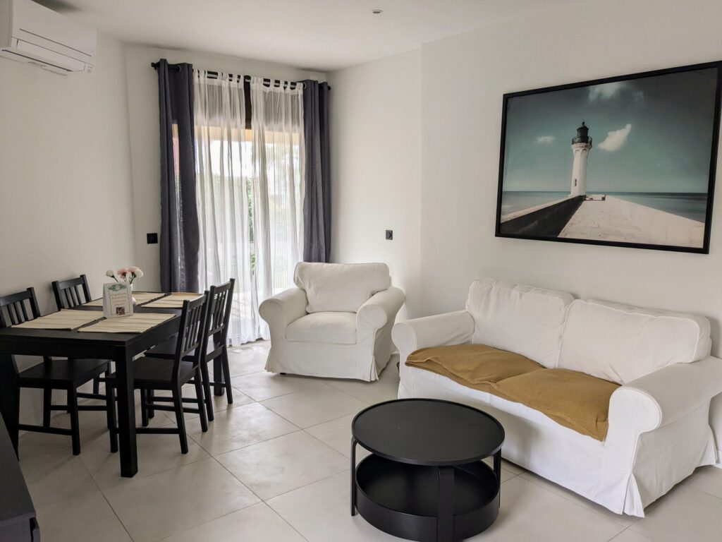 Première collaboration avec le monde de l’immobilier et des promoteurs ! Je suis, pour ce projet, la touche finale d’un grand projet de réhabilitation sur Fréjus Plage. Le bâtiment est ancien mais se situe à deux pas des plages et les appartements en cours de rénovation sont destinés à des investisseurs dans le locatif. L’appartement témoin fait environ 35 m² et les travaux y sont presque terminés. La cuisine est posée, la salle de bain terminée et quelques meubles sont entreposés et devront me servir de base pour une question de budget. En parlant de choses qui fâchent, j’ai une enveloppe de 1000€ pour les accessoires, comme quoi tout est possible ! L’appartement est en rez de chaussé et pour garder la luminosité et réduire les coûts et la main d’oeuvre on garde les murs blancs. En ce qui concerne l’ambiance, la situation nous impose un style bord de mer qui doit plaire au plus grand nombre. Pour une question de praticité de livraison, nous avons choisi un fournisseur unique et je m’occupe de la mise en place. C’est parti pour les images !